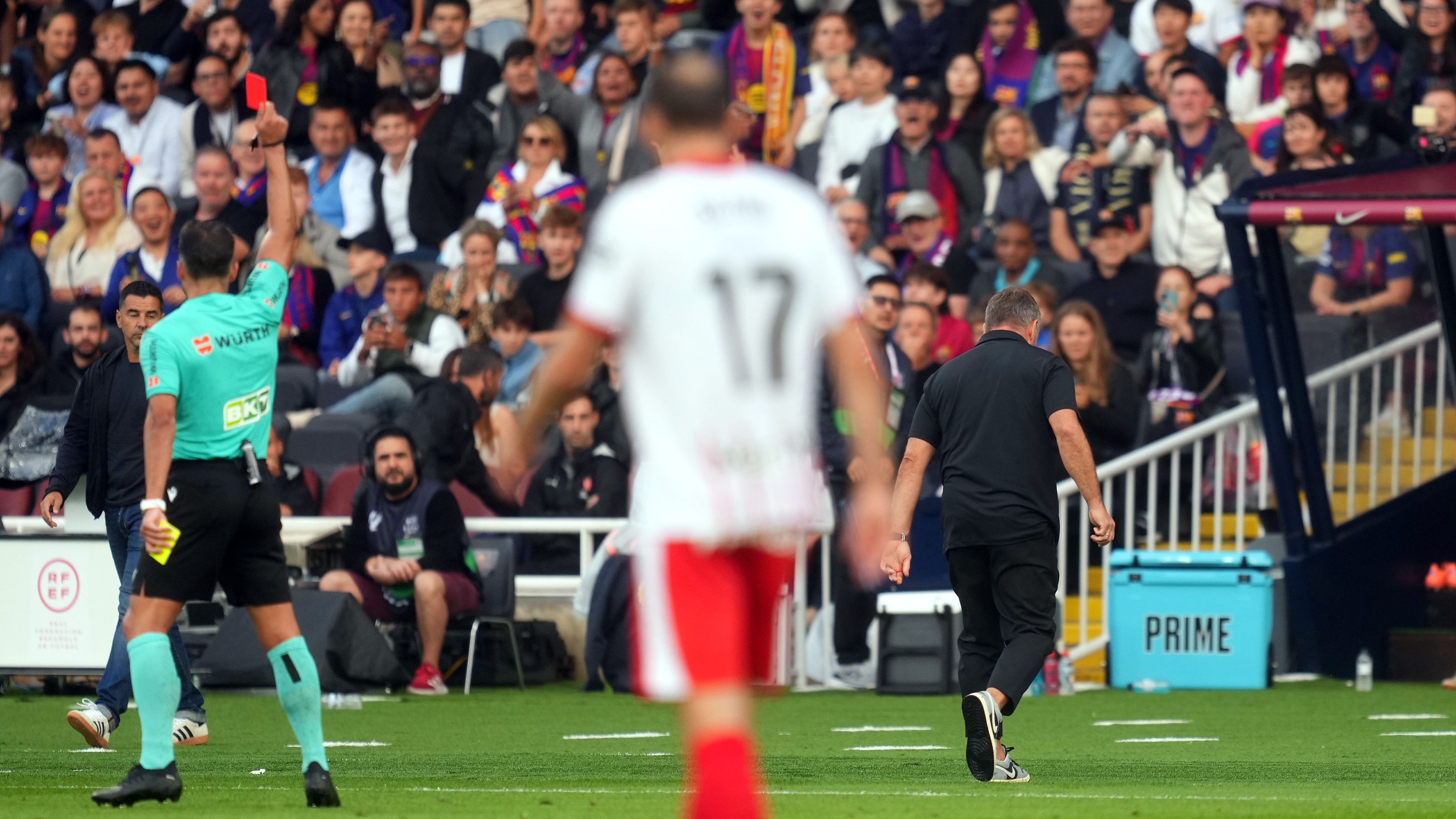 كشف تقرير صحفي، اليوم السبت، عن موقف برشلونة تجاه طرد مدربه الألماني هانز فليك أمام جيرونا.